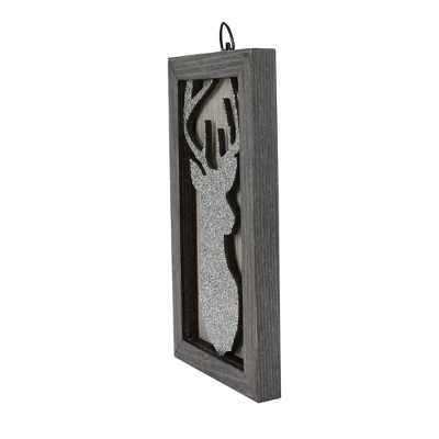 Celebrate a country holiday with family and friends this year. From the Winter’s Bloom collection, this lovely buck silhouette is perfect for adding some sparkle to your holiday decor. Perfect gift for the rustic lover in your lifeProduct Features:Silver glittered buck silhouette in the centerBrown rectangular frame Black loop attached for hanging For indoor use only Dimensions: 10.25”H x 6”W x 1”D Material(s): wood
